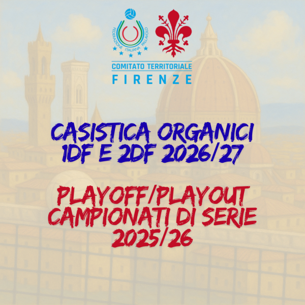 Nella sezione Indizioni Stagione 2025/26 sono stati pubblicati i documenti "Casistica Organico Divisioni 2026/27" e "Playoff Campionati di Serie 2025/26".